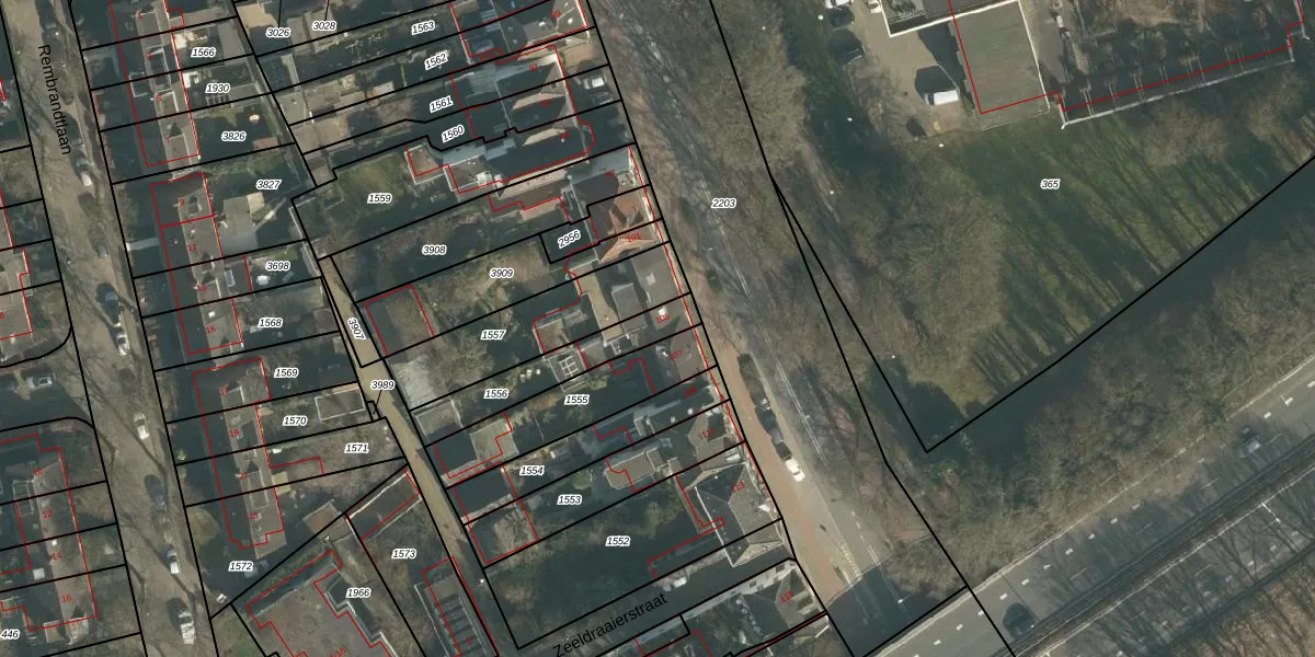 Gebruik de zoekbalk of klik op een perceel voor informatie over de adressen binnen dit perceel.