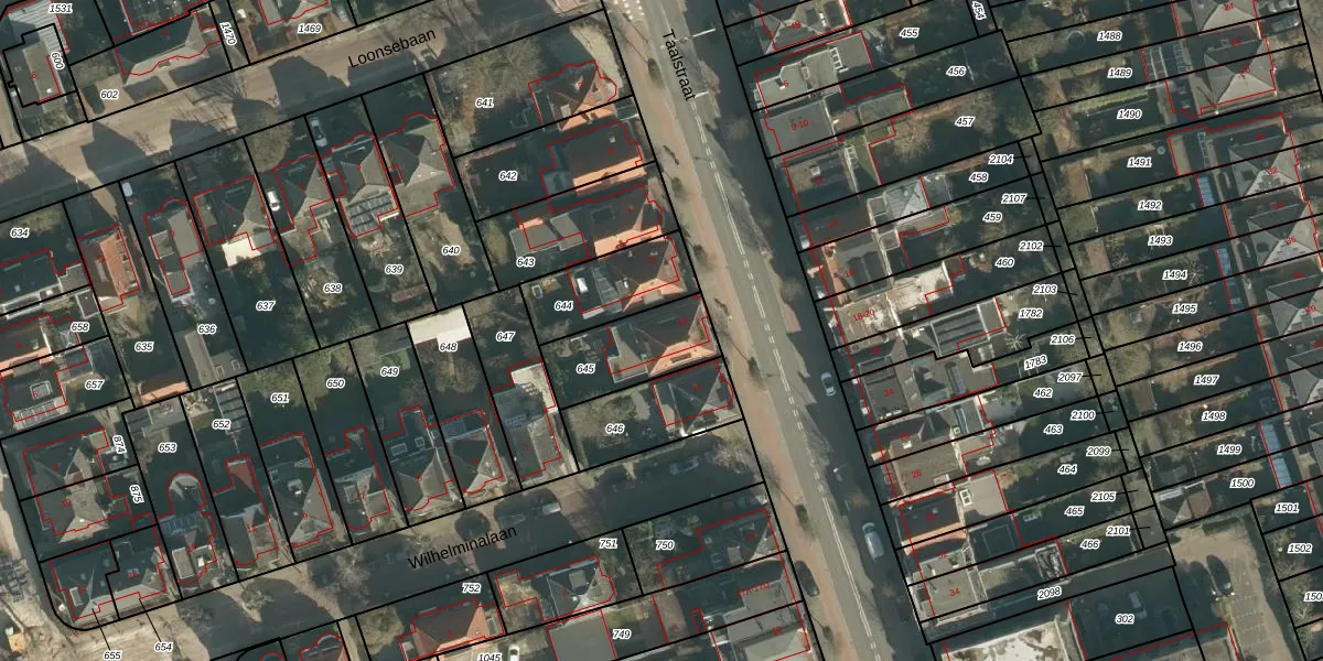 Taalstraat 13 is gelegen op kadastraal perceel VUG00K645. Deze kadastrale aanduiding is uniek en wordt gebruikt door het Kadaster om eigendomsrechten en andere zakelijke rechten vast te leggen. Het perceel maakt onderdeel uit van de kadastrale gemeente Vught.