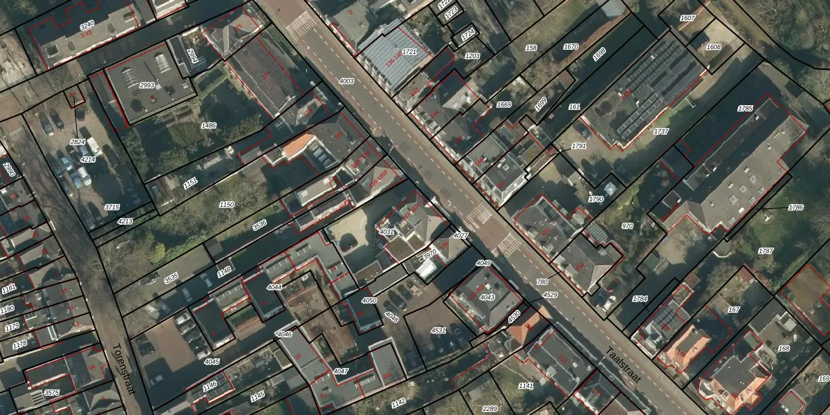 Taalstraat 187 is gelegen op kadastraal perceel VUG00L4031. Deze kadastrale aanduiding is uniek en wordt gebruikt door het Kadaster om eigendomsrechten en andere zakelijke rechten vast te leggen. Het perceel maakt onderdeel uit van de kadastrale gemeente Vught.