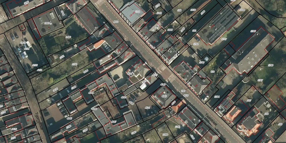 Taalstraat 187-A is gelegen op kadastraal perceel VUG00L4031. Deze kadastrale aanduiding is uniek en wordt gebruikt door het Kadaster om eigendomsrechten en andere zakelijke rechten vast te leggen. Het perceel maakt onderdeel uit van de kadastrale gemeente Vught.