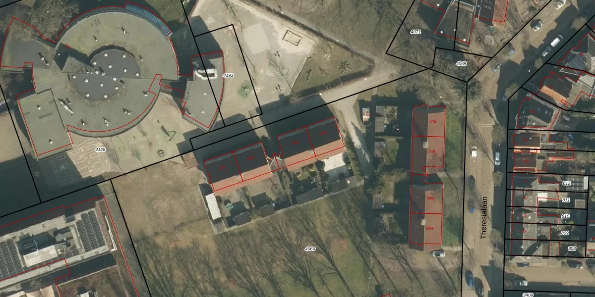 Theresialaan 34-B is gelegen op kadastraal perceel VUG00E4069. Deze kadastrale aanduiding is uniek en wordt gebruikt door het Kadaster om eigendomsrechten en andere zakelijke rechten vast te leggen. Het perceel maakt onderdeel uit van de kadastrale gemeente Vught.