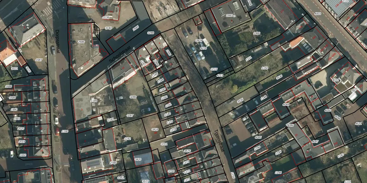 Gebruik de zoekbalk of klik op een perceel voor informatie over de adressen binnen dit perceel.