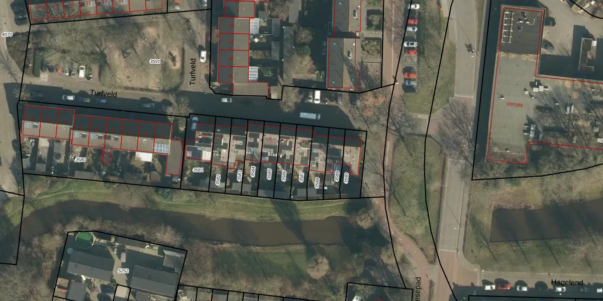Het perceel waarop Turfveld 4 staat heeft een oppervlakte van 135 m². Dit is een middelgroot perceel. De perceeloppervlakte wordt geregistreerd door het Kadaster. Gedetailleerde informatie over de maten van dit perceel kunt u vinden in het rapport Kadastrale kaart met maatvoering van Turfveld 4.