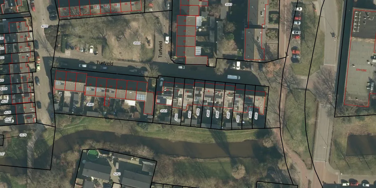 Het perceel waarop Turfveld 8 staat heeft een oppervlakte van 137 m². Dit is een middelgroot perceel. De perceeloppervlakte wordt geregistreerd door het Kadaster. Gedetailleerde informatie over de maten van dit perceel kunt u vinden in het rapport Kadastrale kaart met maatvoering van Turfveld 8.