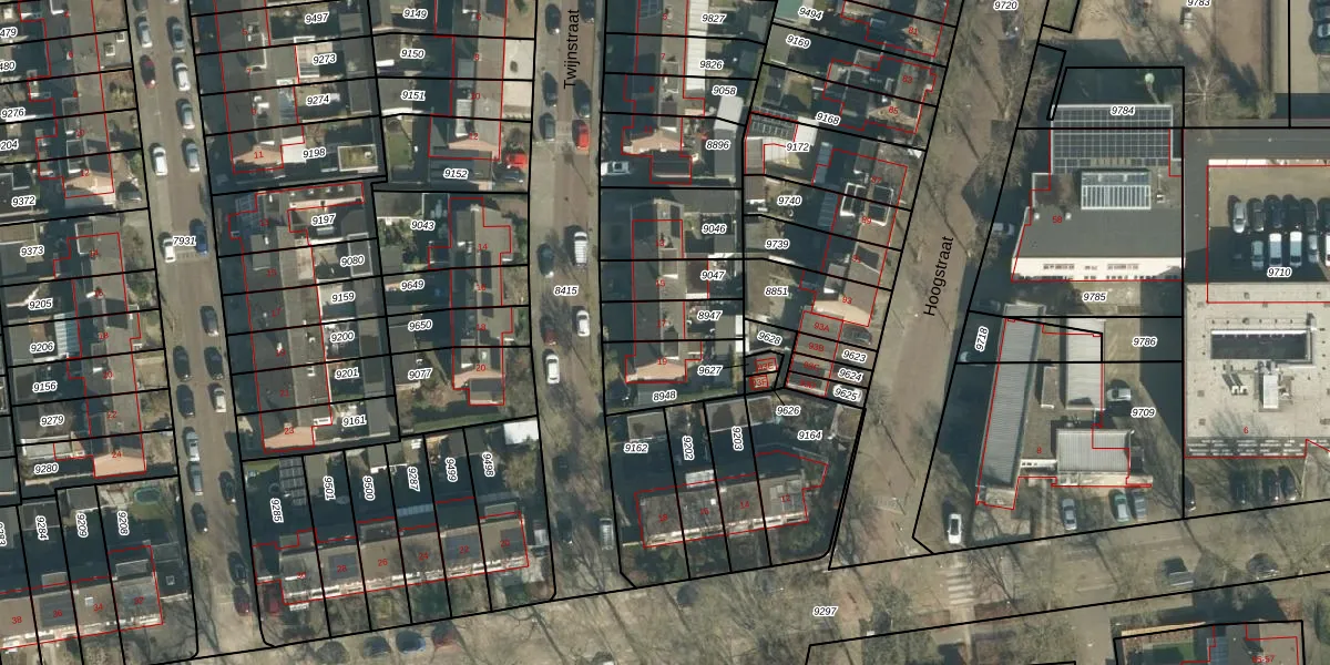 Gebruik de zoekbalk of klik op een perceel voor informatie over de adressen binnen dit perceel.