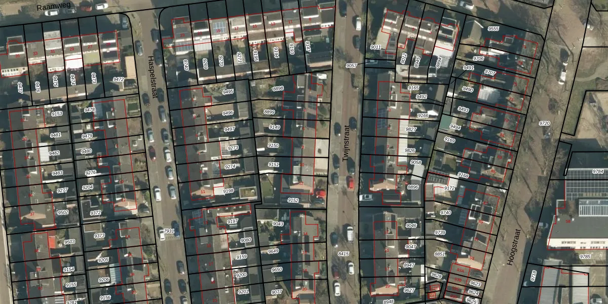 Gebruik de zoekbalk of klik op een perceel voor informatie over de adressen binnen dit perceel.