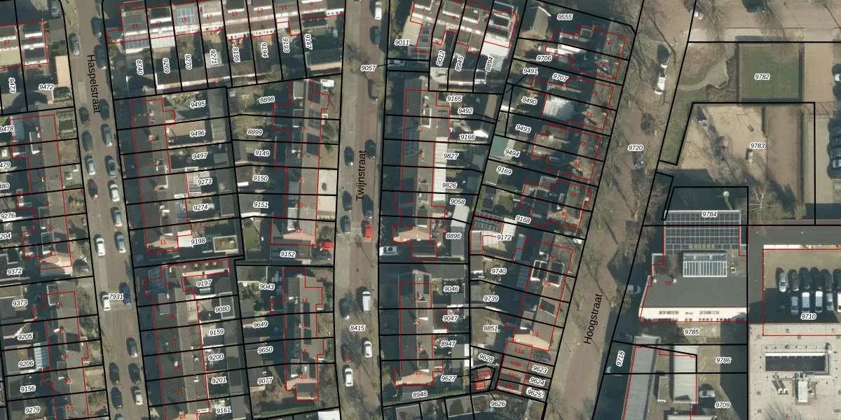 Twijnstraat 9 is gelegen op kadastraal perceel VUG00B9058. Deze kadastrale aanduiding is uniek en wordt gebruikt door het Kadaster om eigendomsrechten en andere zakelijke rechten vast te leggen. Het perceel maakt onderdeel uit van de kadastrale gemeente Vught.