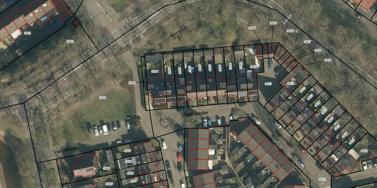 Vaarvonder 50 is gelegen op kadastraal perceel VUG00D3597. Deze kadastrale aanduiding is uniek en wordt gebruikt door het Kadaster om eigendomsrechten en andere zakelijke rechten vast te leggen. Het perceel maakt onderdeel uit van de kadastrale gemeente Vught.