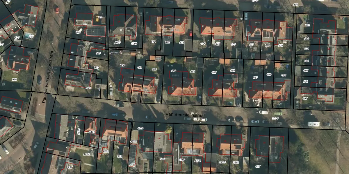 Van Beresteijnstraat 8 is gelegen op kadastraal perceel VUG00L683. Deze kadastrale aanduiding is uniek en wordt gebruikt door het Kadaster om eigendomsrechten en andere zakelijke rechten vast te leggen. Het perceel maakt onderdeel uit van de kadastrale gemeente Vught.