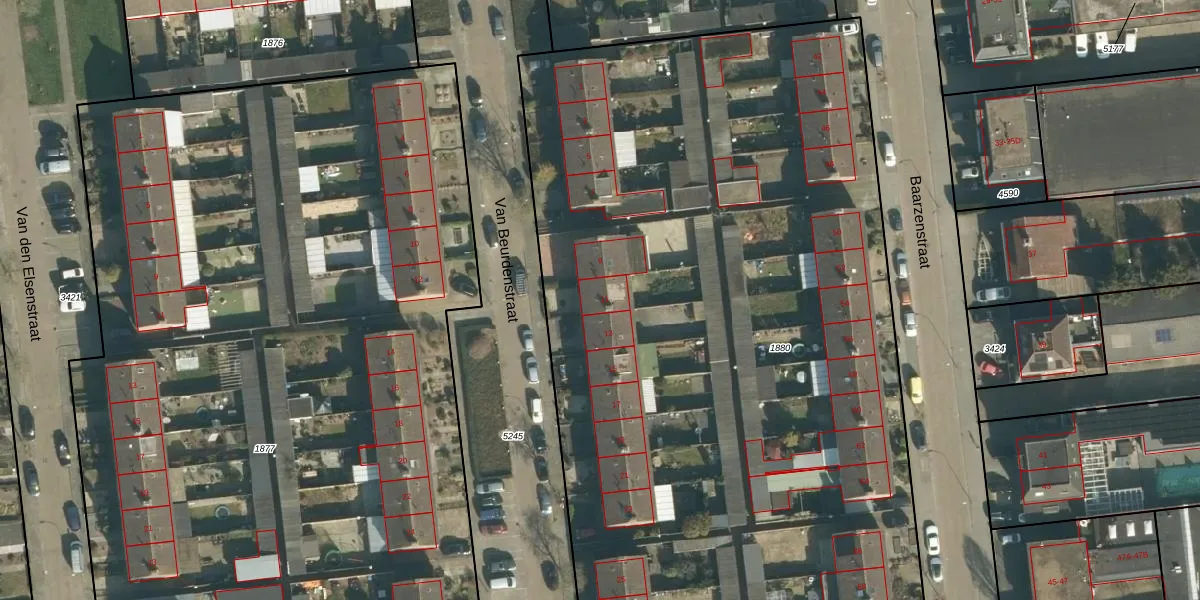 Het perceel waarop Van Beurdenstraat 11 staat heeft een oppervlakte van 6440 m². Dit is een zeer groot perceel. De perceeloppervlakte wordt geregistreerd door het Kadaster. Gedetailleerde informatie over de maten van dit perceel kunt u vinden in het rapport Kadastrale kaart met maatvoering van Van Beurdenstraat 11.