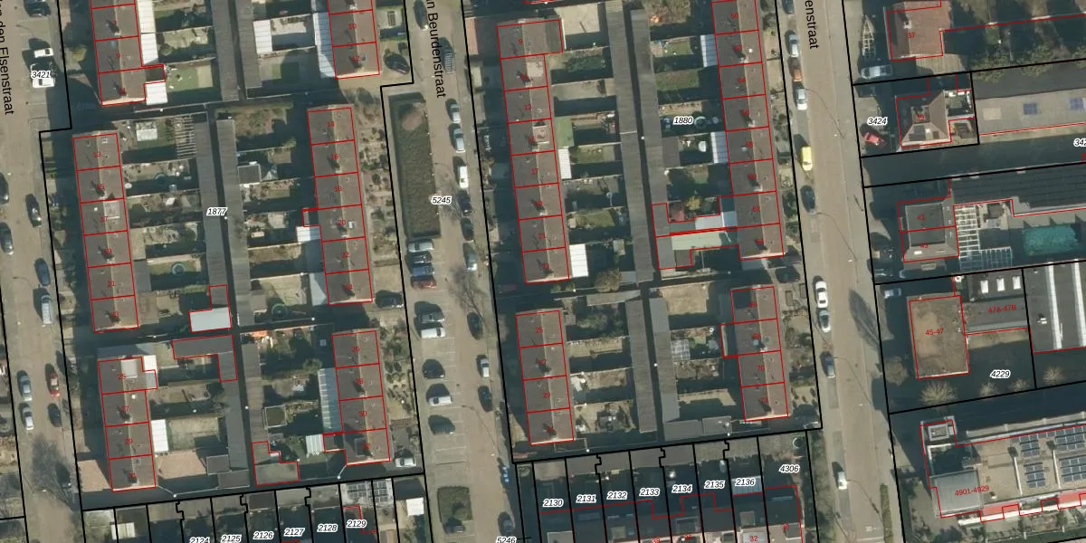 Het perceel waarop Van Beurdenstraat 23 staat heeft een oppervlakte van 6440 m². Dit is een zeer groot perceel. De perceeloppervlakte wordt geregistreerd door het Kadaster. Gedetailleerde informatie over de maten van dit perceel kunt u vinden in het rapport Kadastrale kaart met maatvoering van Van Beurdenstraat 23.