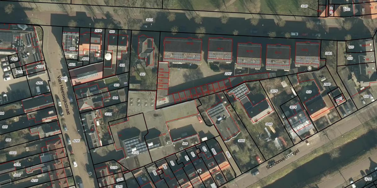 Het perceel waarop Van de Pollstraat 23-H staat heeft een oppervlakte van 2375 m². Dit is een zeer groot perceel. De perceeloppervlakte wordt geregistreerd door het Kadaster. Gedetailleerde informatie over de maten van dit perceel kunt u vinden in het rapport Kadastrale kaart met maatvoering van Van de Pollstraat 23-H.