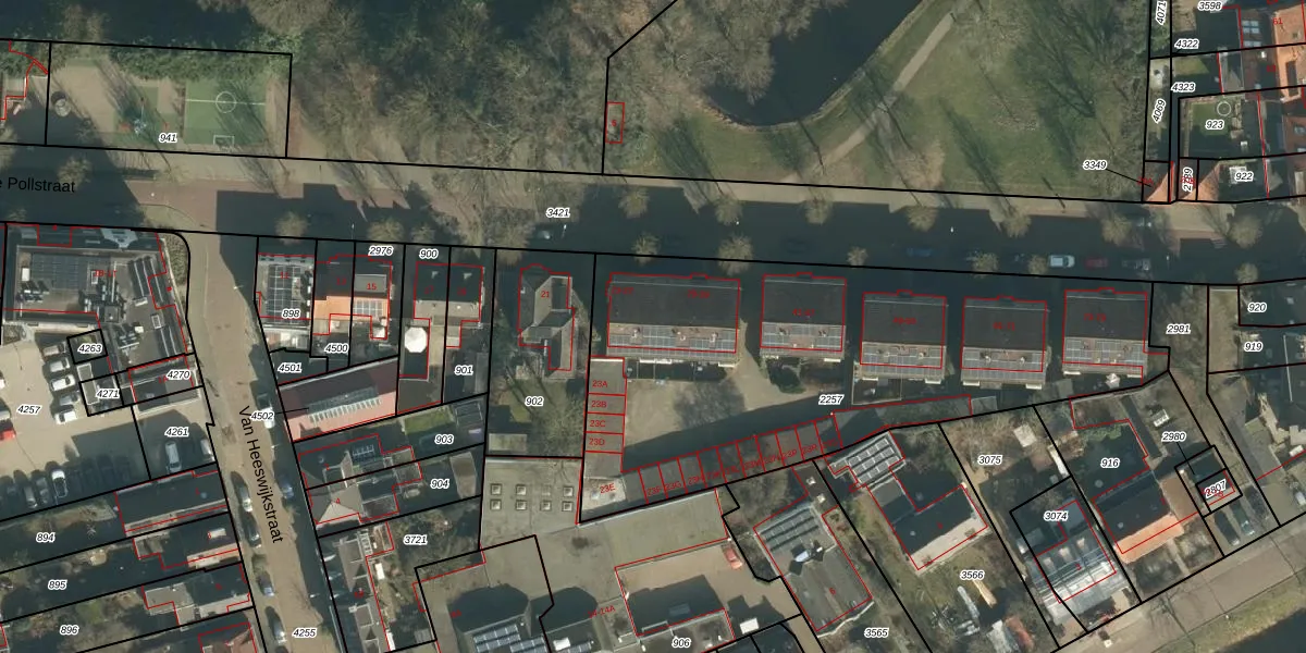 Het perceel waarop Van de Pollstraat 37 staat heeft een oppervlakte van 2375 m². Dit is een zeer groot perceel. De perceeloppervlakte wordt geregistreerd door het Kadaster. Gedetailleerde informatie over de maten van dit perceel kunt u vinden in het rapport Kadastrale kaart met maatvoering van Van de Pollstraat 37.