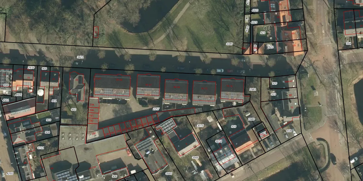Het perceel waarop Van de Pollstraat 59 staat heeft een oppervlakte van 2375 m². Dit is een zeer groot perceel. De perceeloppervlakte wordt geregistreerd door het Kadaster. Gedetailleerde informatie over de maten van dit perceel kunt u vinden in het rapport Kadastrale kaart met maatvoering van Van de Pollstraat 59.