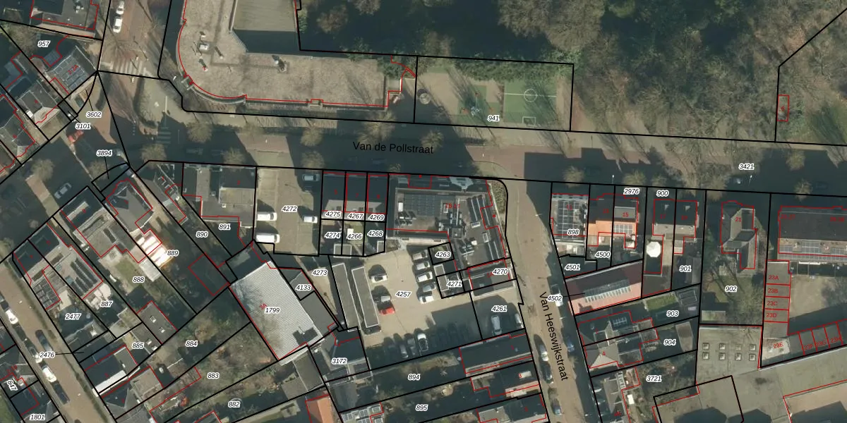 Het perceel waarop het adres ligt is VUG00-L-4257. De afkorting 'VUG00' staat voor kadastrale gemeente Vught. Het perceel is kleiner dan gemiddeld in Vught. Het perceel is 1219 m² groot, terwijl het gemiddelde ligt op 2686,28 m². Het grootste perceel in de kadastrale gemeente is 65,7 ha. Het kleinste perceel heeft een oppervlakte van 0 m². Op het perceel liggen in totaal 15 adressen. In de Basisregistratie Kadaster (BRK) werden de grenzen van het perceel geregistreerd op 15-12-2021.