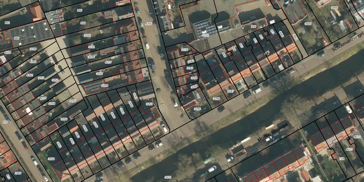 Gebruik de zoekbalk of klik op een perceel voor informatie over de adressen binnen dit perceel.