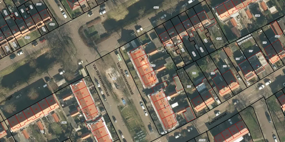 Van Rijckevorselstraat 37 is gelegen op kadastraal perceel VUG00L4110. Deze kadastrale aanduiding is uniek en wordt gebruikt door het Kadaster om eigendomsrechten en andere zakelijke rechten vast te leggen. Het perceel maakt onderdeel uit van de kadastrale gemeente Vught.