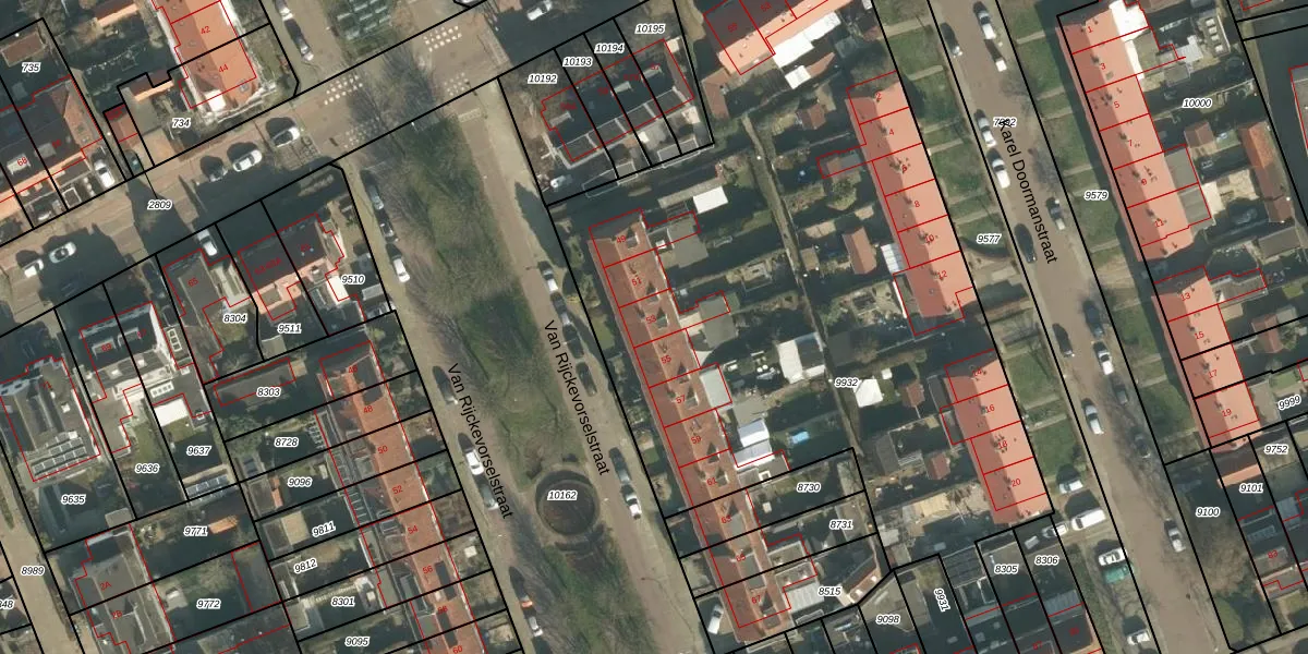 Van Rijckevorselstraat 53 is gelegen op kadastraal perceel VUG00B9932. Deze kadastrale aanduiding is uniek en wordt gebruikt door het Kadaster om eigendomsrechten en andere zakelijke rechten vast te leggen. Het perceel maakt onderdeel uit van de kadastrale gemeente Vught.