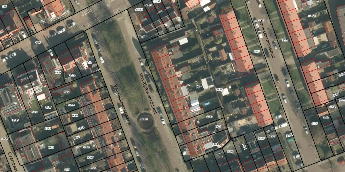 Van Rijckevorselstraat 55 is gelegen op kadastraal perceel VUG00B9932. Deze kadastrale aanduiding is uniek en wordt gebruikt door het Kadaster om eigendomsrechten en andere zakelijke rechten vast te leggen. Het perceel maakt onderdeel uit van de kadastrale gemeente Vught.