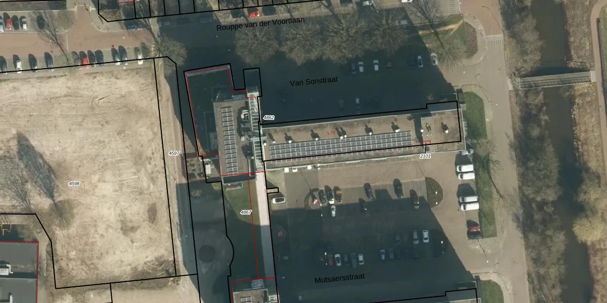 Het perceel waarop Van Sonstraat 40 staat heeft een oppervlakte van 802 m². Dit is een groot perceel. De perceeloppervlakte wordt geregistreerd door het Kadaster. Gedetailleerde informatie over de maten van dit perceel kunt u vinden in het rapport Kadastrale kaart met maatvoering van Van Sonstraat 40.