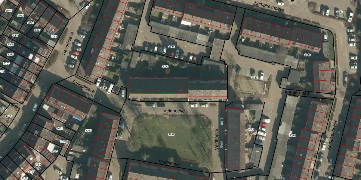 Het perceel waarop Veldhoeve 16 staat heeft een oppervlakte van 3879 m². Dit is een zeer groot perceel. De perceeloppervlakte wordt geregistreerd door het Kadaster. Gedetailleerde informatie over de maten van dit perceel kunt u vinden in het rapport Kadastrale kaart met maatvoering van Veldhoeve 16.
