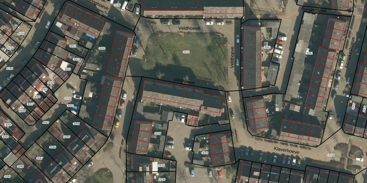 Het perceel waarop Veldhoeve 37 staat heeft een oppervlakte van 1410 m². Dit is een zeer groot perceel. De perceeloppervlakte wordt geregistreerd door het Kadaster. Gedetailleerde informatie over de maten van dit perceel kunt u vinden in het rapport Kadastrale kaart met maatvoering van Veldhoeve 37.