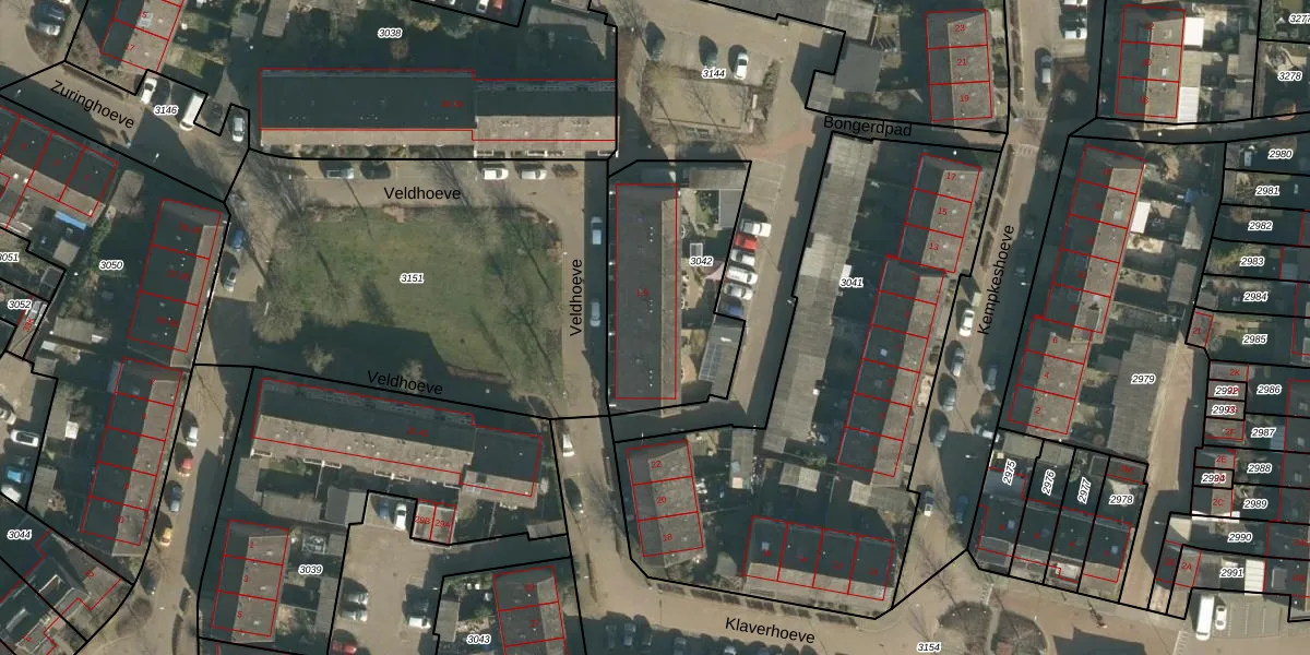 Veldhoeve 4 is gelegen op kadastraal perceel VUG00D3042. Deze kadastrale aanduiding is uniek en wordt gebruikt door het Kadaster om eigendomsrechten en andere zakelijke rechten vast te leggen. Het perceel maakt onderdeel uit van de kadastrale gemeente Vught.