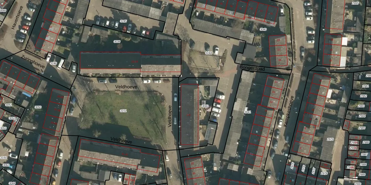 Veldhoeve 9 is gelegen op kadastraal perceel VUG00D3042. Deze kadastrale aanduiding is uniek en wordt gebruikt door het Kadaster om eigendomsrechten en andere zakelijke rechten vast te leggen. Het perceel maakt onderdeel uit van de kadastrale gemeente Vught.