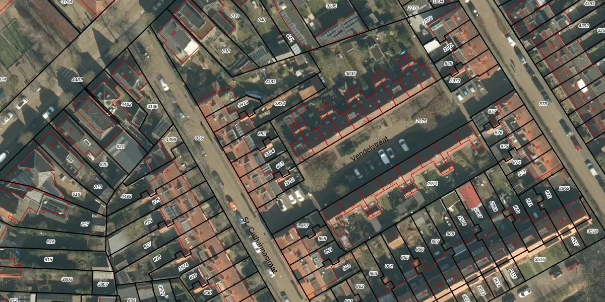 Vendelstraat 19 is gelegen op kadastraal perceel VUG00L3835. Deze kadastrale aanduiding is uniek en wordt gebruikt door het Kadaster om eigendomsrechten en andere zakelijke rechten vast te leggen. Het perceel maakt onderdeel uit van de kadastrale gemeente Vught.