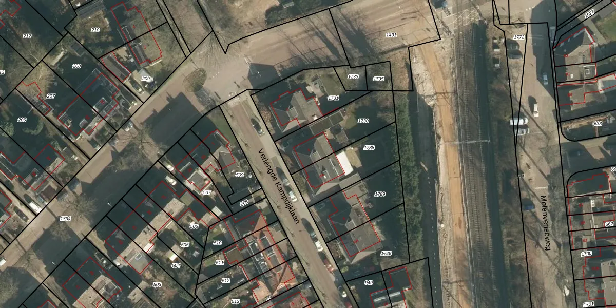Verlengde Kampdijklaan 4 is gelegen op kadastraal perceel VUG00K1730. Deze kadastrale aanduiding is uniek en wordt gebruikt door het Kadaster om eigendomsrechten en andere zakelijke rechten vast te leggen. Het perceel maakt onderdeel uit van de kadastrale gemeente Vught.