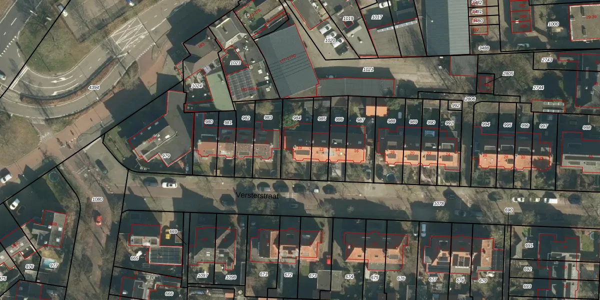 Gebruik de zoekbalk of klik op een perceel voor informatie over de adressen binnen dit perceel.