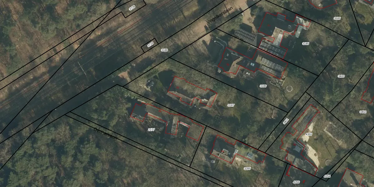 Het perceel waarop Vogelkerslaan 21 staat heeft een oppervlakte van 1845 m². Dit is een zeer groot perceel. De perceeloppervlakte wordt geregistreerd door het Kadaster. Gedetailleerde informatie over de maten van dit perceel kunt u vinden in het rapport Kadastrale kaart met maatvoering van Vogelkerslaan 21.