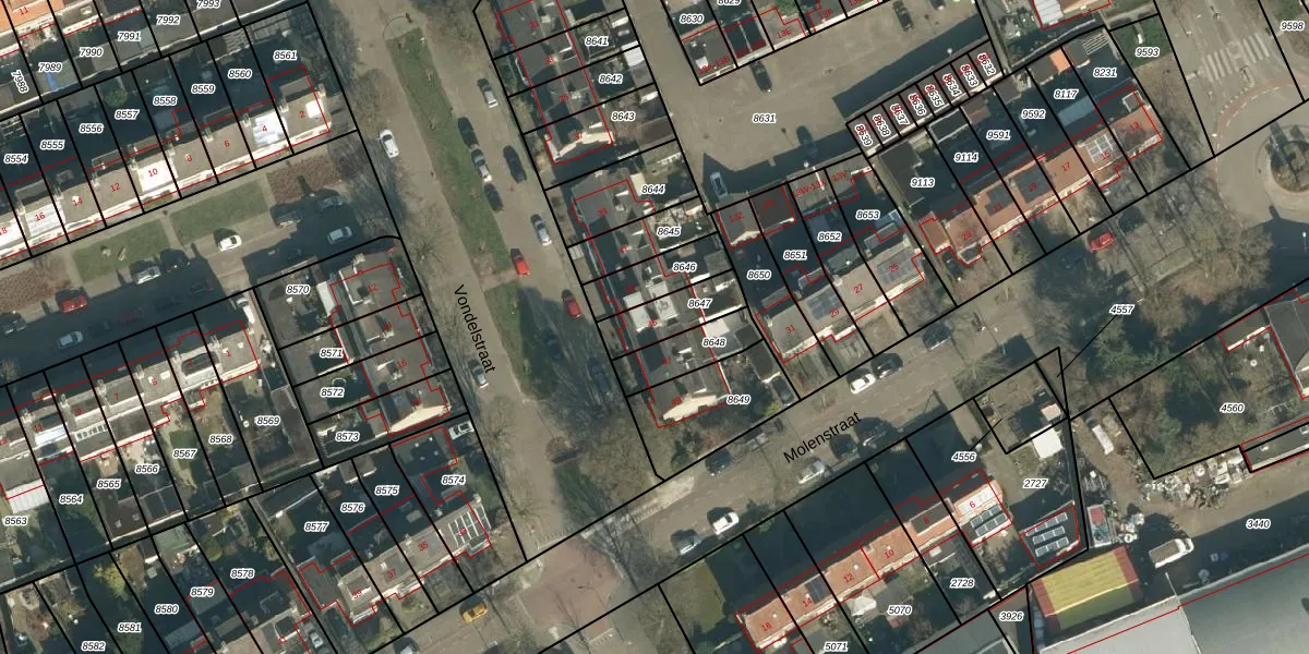 Vondelstraat 45 is gelegen op kadastraal perceel VUG00B8647. Deze kadastrale aanduiding is uniek en wordt gebruikt door het Kadaster om eigendomsrechten en andere zakelijke rechten vast te leggen. Het perceel maakt onderdeel uit van de kadastrale gemeente Vught.
