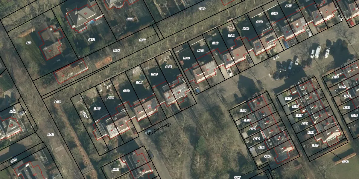 Vughterhage 34 is gelegen op kadastraal perceel VUG00K1065. Deze kadastrale aanduiding is uniek en wordt gebruikt door het Kadaster om eigendomsrechten en andere zakelijke rechten vast te leggen. Het perceel maakt onderdeel uit van de kadastrale gemeente Vught.
