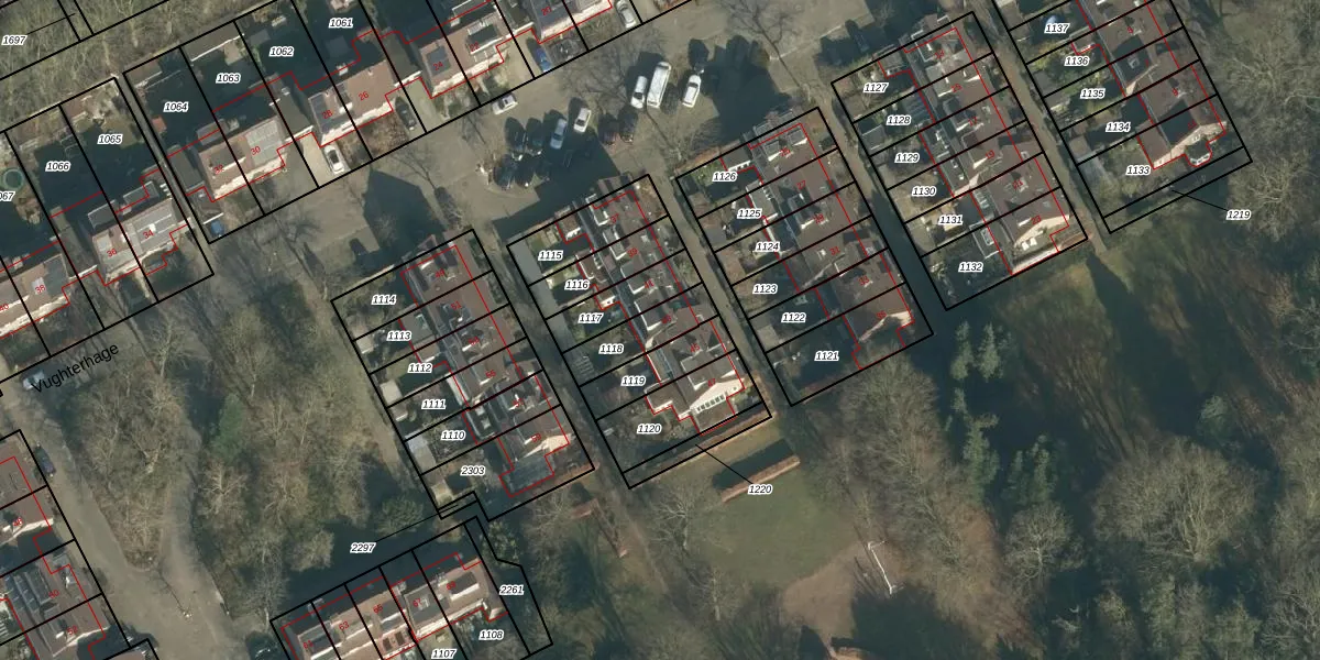 Vughterhage 43 is gelegen op kadastraal perceel VUG00K1118. Deze kadastrale aanduiding is uniek en wordt gebruikt door het Kadaster om eigendomsrechten en andere zakelijke rechten vast te leggen. Het perceel maakt onderdeel uit van de kadastrale gemeente Vught.
