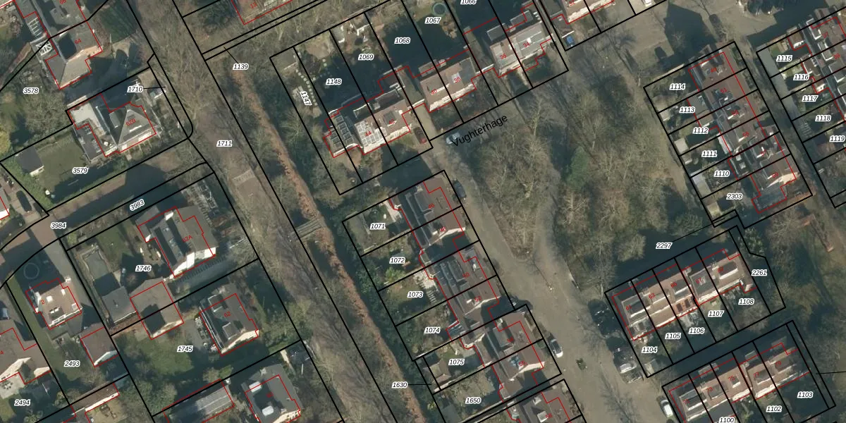 Vughterhage 46 is gelegen op kadastraal perceel VUG00K1071. Deze kadastrale aanduiding is uniek en wordt gebruikt door het Kadaster om eigendomsrechten en andere zakelijke rechten vast te leggen. Het perceel maakt onderdeel uit van de kadastrale gemeente Vught.