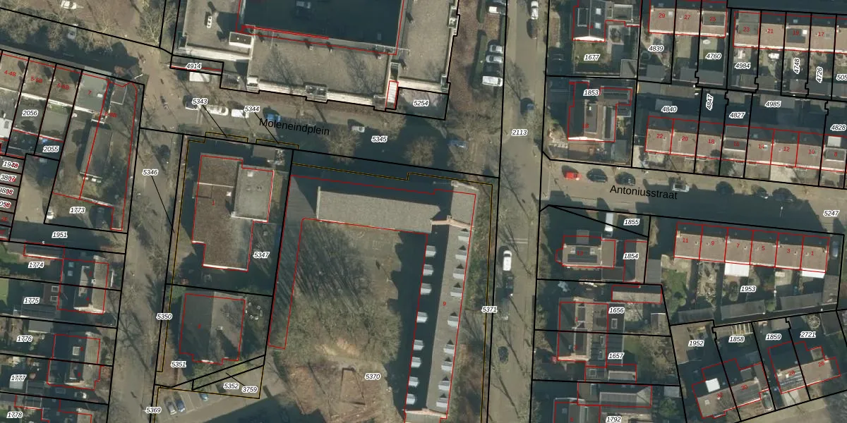Het perceel waarop Willibrordusstraat 110 staat heeft een oppervlakte van 5264 m². Dit is een zeer groot perceel. De perceeloppervlakte wordt geregistreerd door het Kadaster. Gedetailleerde informatie over de maten van dit perceel kunt u vinden in het rapport Kadastrale kaart met maatvoering van Willibrordusstraat 110.