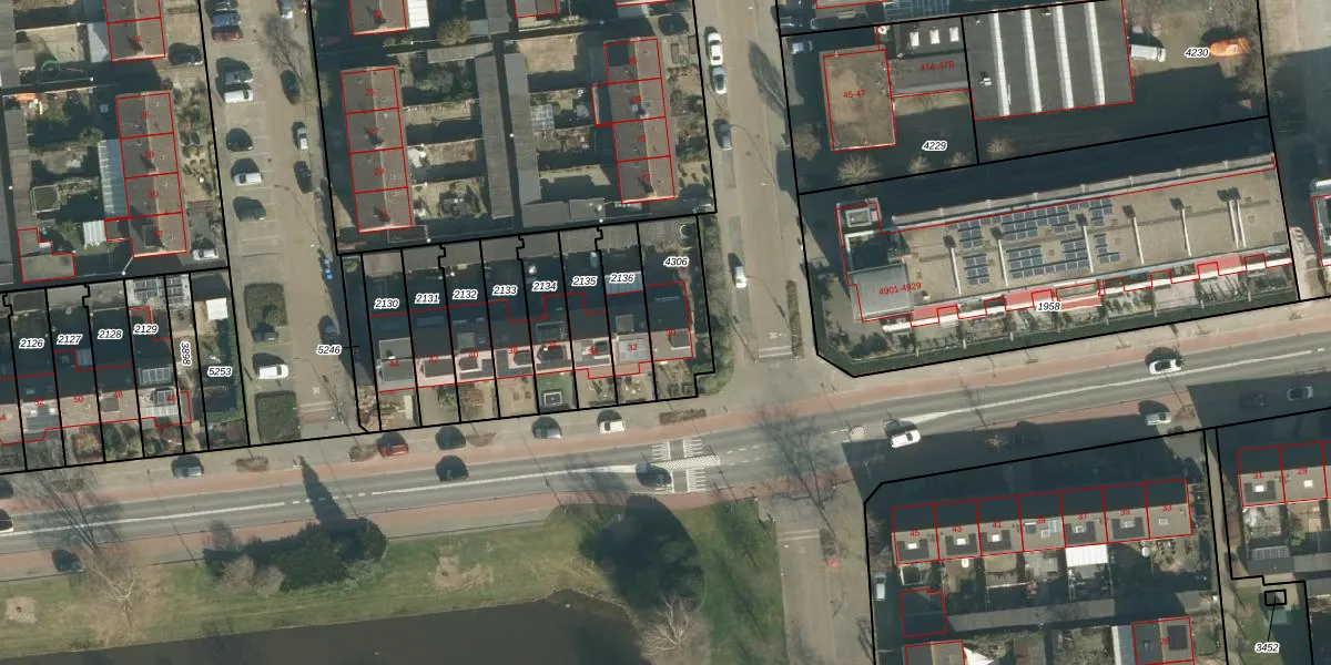 Gebruik de zoekbalk of klik op een perceel voor informatie over de adressen binnen dit perceel.