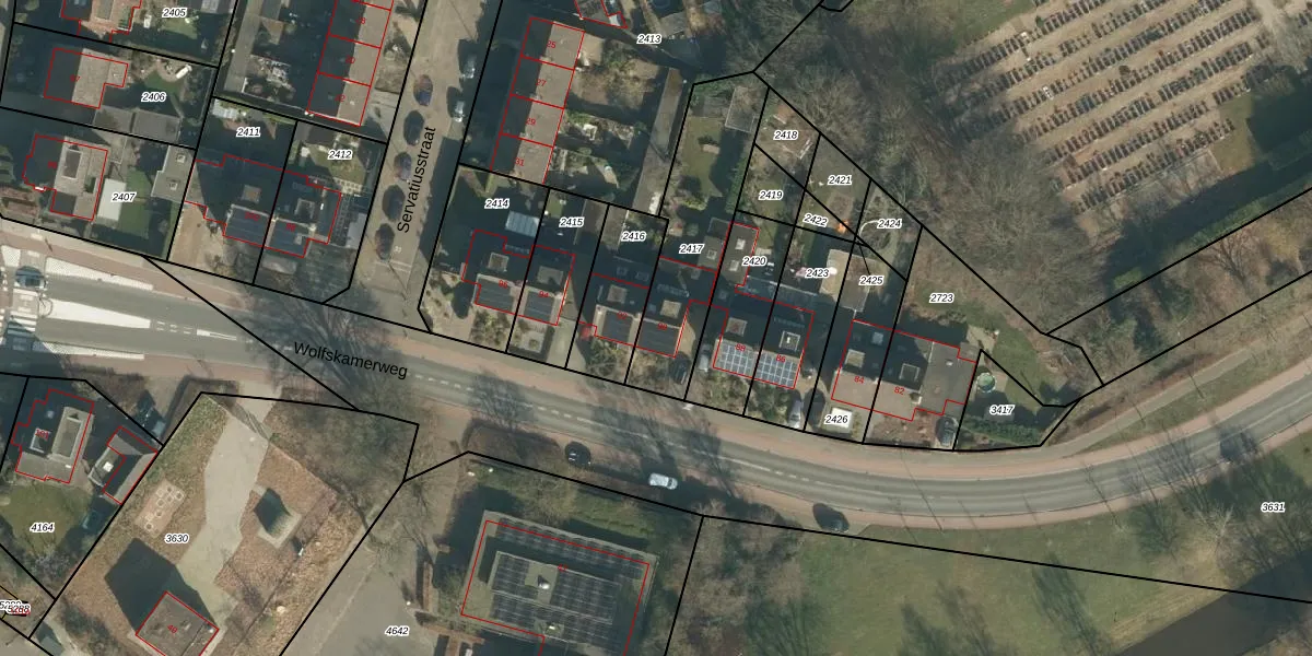Wolfskamerweg 90 is gelegen op kadastraal perceel VUG00D2417. Deze kadastrale aanduiding is uniek en wordt gebruikt door het Kadaster om eigendomsrechten en andere zakelijke rechten vast te leggen. Het perceel maakt onderdeel uit van de kadastrale gemeente Vught.