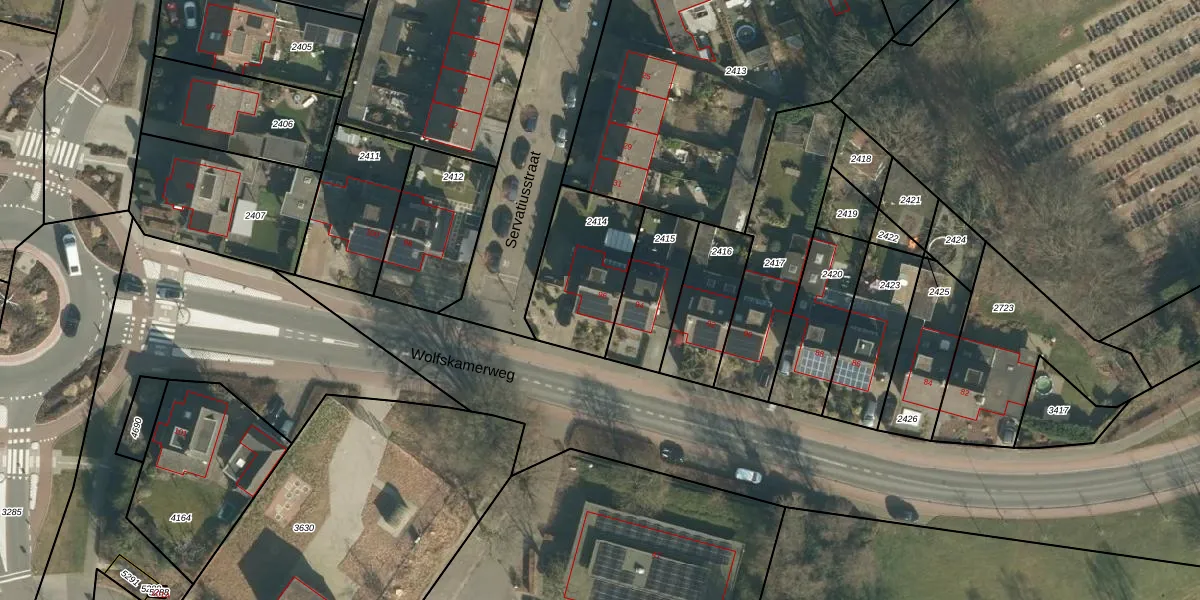 Het perceel waarop Wolfskamerweg 96 staat heeft een oppervlakte van 375 m². Dit is een groot perceel. De perceeloppervlakte wordt geregistreerd door het Kadaster. Gedetailleerde informatie over de maten van dit perceel kunt u vinden in het rapport Kadastrale kaart met maatvoering van Wolfskamerweg 96.