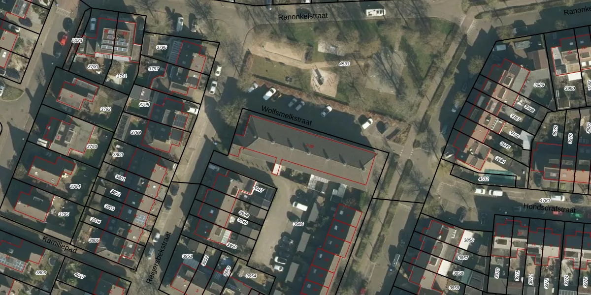 Het perceel waarop Wolfsmelkstraat 18 staat heeft een oppervlakte van 2492 m². Dit is een zeer groot perceel. De perceeloppervlakte wordt geregistreerd door het Kadaster. Gedetailleerde informatie over de maten van dit perceel kunt u vinden in het rapport Kadastrale kaart met maatvoering van Wolfsmelkstraat 18.