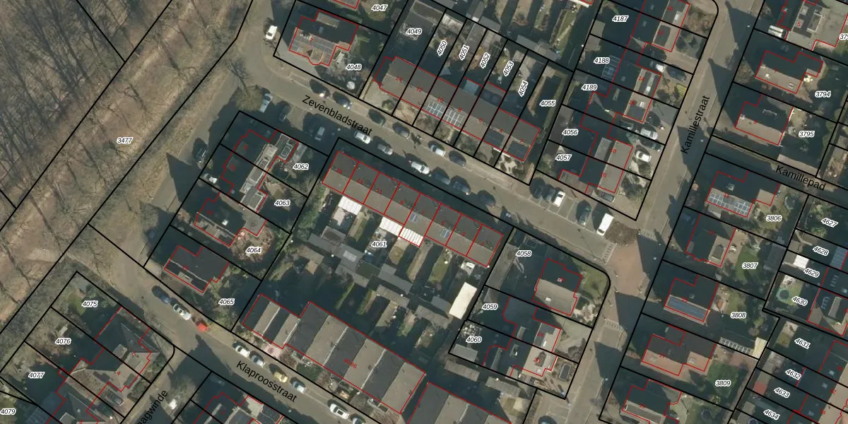 Zevenbladstraat 7 is gelegen op kadastraal perceel VUG00D4061. Deze kadastrale aanduiding is uniek en wordt gebruikt door het Kadaster om eigendomsrechten en andere zakelijke rechten vast te leggen. Het perceel maakt onderdeel uit van de kadastrale gemeente Vught.
