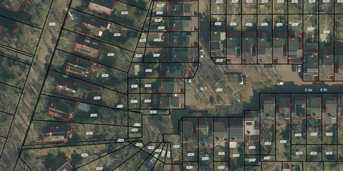 Het perceel waarop Zonnebos 15 staat heeft een oppervlakte van 235 m². Dit is een middelgroot perceel. De perceeloppervlakte wordt geregistreerd door het Kadaster. Gedetailleerde informatie over de maten van dit perceel kunt u vinden in het rapport Kadastrale kaart met maatvoering van Zonnebos 15.