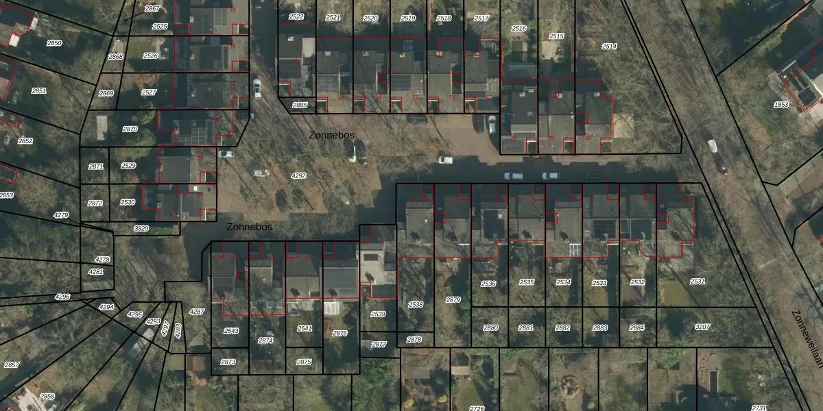 Het perceel waarop Zonnebos 8 staat heeft een oppervlakte van 326 m². Dit is een groot perceel. De perceeloppervlakte wordt geregistreerd door het Kadaster. Gedetailleerde informatie over de maten van dit perceel kunt u vinden in het rapport Kadastrale kaart met maatvoering van Zonnebos 8.
