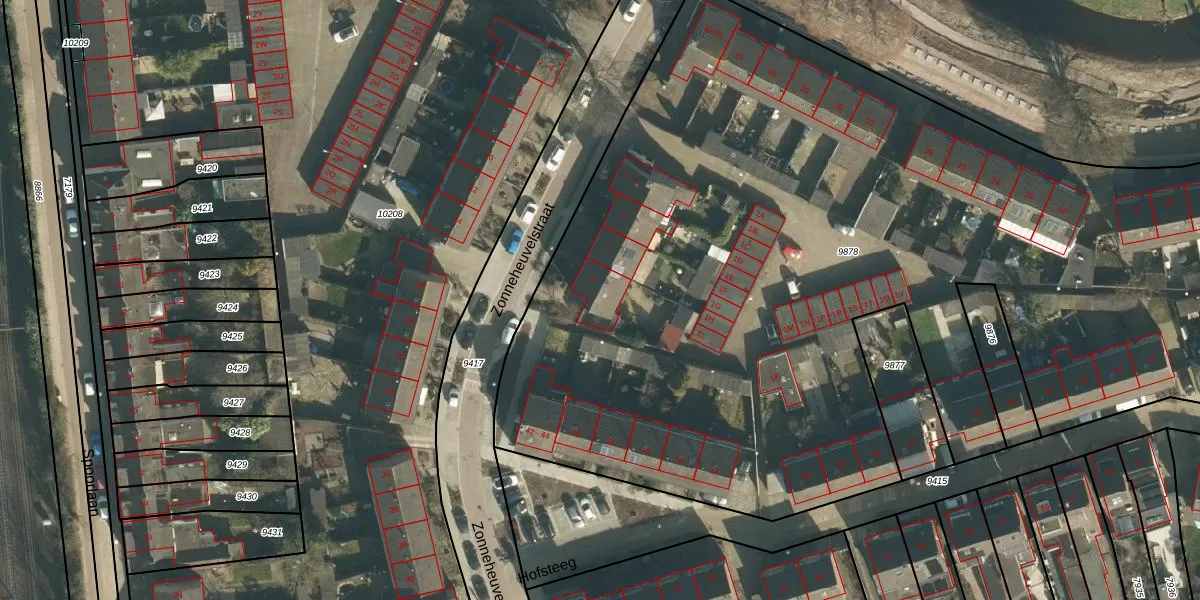 Zonneheuvelstraat 9 is gelegen op kadastraal perceel VUG00B9878. Deze kadastrale aanduiding is uniek en wordt gebruikt door het Kadaster om eigendomsrechten en andere zakelijke rechten vast te leggen. Het perceel maakt onderdeel uit van de kadastrale gemeente Vught.