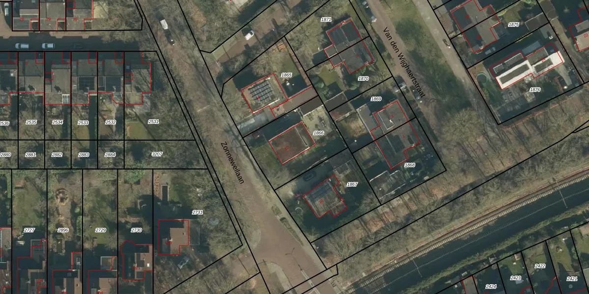 Zonneweilaan 12 is gelegen op kadastraal perceel VUG00L1866. Deze kadastrale aanduiding is uniek en wordt gebruikt door het Kadaster om eigendomsrechten en andere zakelijke rechten vast te leggen. Het perceel maakt onderdeel uit van de kadastrale gemeente Vught.
