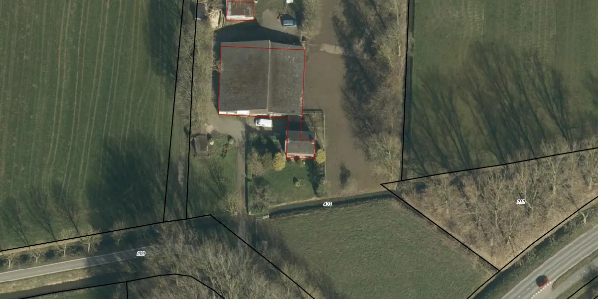 Het adres ligt op het perceel VRN00-S-433, dat zich in de kadastrale gemeente Vuren bevindt. De gemiddelde perceeloppervlakte in de kadastrale gemeente Vuren is 8255,97 m². Dit perceel is met zijn 8560 m² dus groter dan gemiddeld. Het kleinste perceel in de kadastrale gemeente is 0 m² groot. De grootste perceeloppervlakte is 31,9 ha. Er zijn geen andere adressen aanwezig op het perceel. De huidige grenzen van het perceel zijn digitaal in de Basisregistratie Kadaster (BRK) geregistreerd op 21-02-2002.