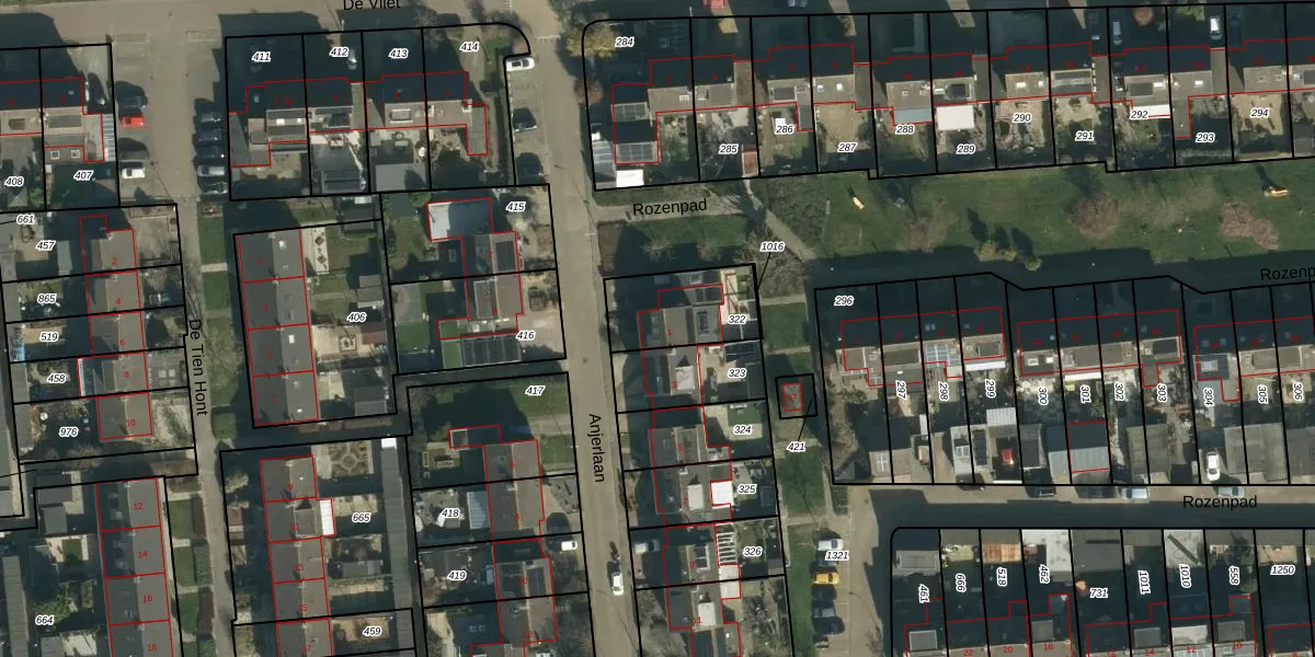 Anjerlaan 1 is gelegen op kadastraal perceel VRN00R322. Deze kadastrale aanduiding is uniek en wordt gebruikt door het Kadaster om eigendomsrechten en andere zakelijke rechten vast te leggen. Het perceel maakt onderdeel uit van de kadastrale gemeente Vuren.
