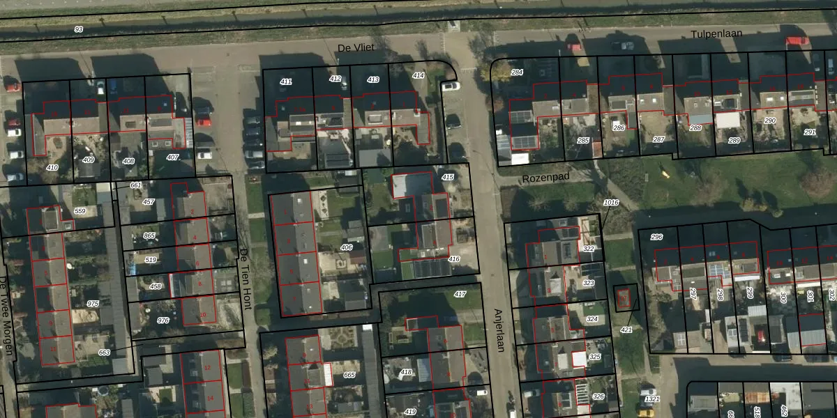 Gebruik de zoekbalk of klik op een perceel voor informatie over de adressen binnen dit perceel.