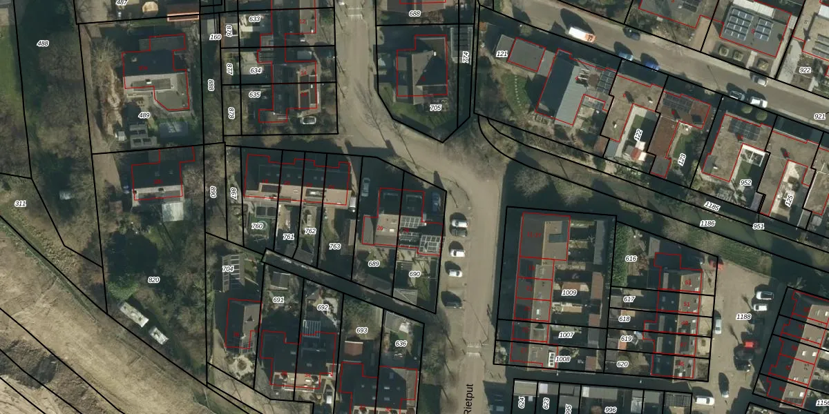 Gebruik de zoekbalk of klik op een perceel voor informatie over de adressen binnen dit perceel.